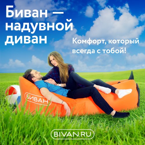 Итак, биван - это новый тип мебели, тот, что называют надувным диваном, но тот, что не необходимо надувать. По крайней мере ртом. Позабудем о насосах для надувных и изделий и измученном дыхательном агрегате. Основное превосходство - это конечно возможность с комфортом прилечь и расслабиться фактически где желательно! Дома, на работе, на вокзале, в гараже, в парке - повсюду, при исключительном условии: вы возьмете с собой небольшую сумку-мешочек весом около 1,5 кг и сделаете несколько волшебных взмахов. По ощущениям очень схоже на лежание в гамаке. То, что это отечественный продукт, конечно отменно, но само по себе не является превосходством. Радует тут то, что при его разработке учли недочеты основного соперника, а свой продукт доработали и модифицировали. Изготовлен из больше крепкой и верной парашютной ткани, следственно он дольше и служит. Наш в применении с сентября 2016 года. Есть возможность купить ремкомплект, тот, что стоит 350 рублей. Если у Вас прокололся либо порвался аналог - приобретайте новый, а с биваном предусмотрен такой вот ремонт! Долго выдерживает нагрузку и не сдувается. Мы тестили 8 часов, но в рабочую смену, т.е. периодично вставая. В youtube можно обнаружить видео, где человек полновесно спал на нем и все было ок. Но! Это только при условии положительного надувания. О том же ламзаке судить не могу, но тестеры указывают на удержание воздуха всего 2-3 часа. По поводу применения взамен водного матраса для плавания: мне кажется, по морю либо речке на биване рассекать не слишком комфортно, т.к. посмотрела несколько комичных видео, где пользователи пытались это делать. А вот прилечь на пляже абсолютно вариант. Резюмируя, вещь отменная. Я ее советую всем, кто имеет энергичный образ жизни, любит отдыхать на природе либо в городских парках либо имеет работу скажем в ночную смену, где порой нужно просто скоротать по 2-3 часа. Это хорошая замена раскладушке. Не рекомендую для регулярного сна и пожилым людям. И очень не рекомендую приобретать сходственные китайские поделки - они очень некачественные. Стоимость такого надувного дивана 2691 рублей на официальном сайте интернет-магазина Bivan. Необходимо рассматривать, что ребята только вышли на энергичные продажи, и с увеличением объемов себестоимость может упасть, а за ней и цена. И думаю, скидки еще будут.